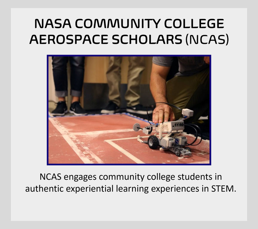 NASA Community College Aerospace Scholars (NCAS) is an activity under the Minority University Research and Education Project (MUREP), administered through NASA’s Office of STEM Engagement.