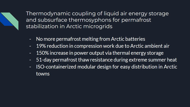 Excess power liquefies air; cryogenic exhaust stabilizes permafrost via subgrade piping