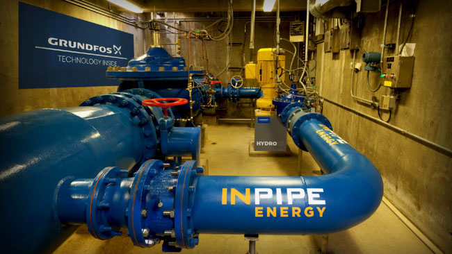 An in-conduit pressure reducing turbine acting in place of a PRV, built to recover energy from pressure differences from high pressure lines