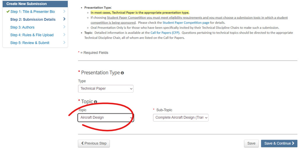 Topic: Be sure to select “Aircraft Design” so it gets routed to the committee that is expecting GoAERO submissions.