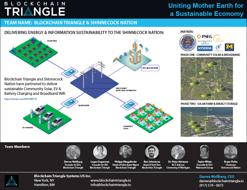Blockchain Triangle and Shinnecock Nation have partnered to deliver sustainable community solar, EV, Battery Charging and Broadband Wifi.