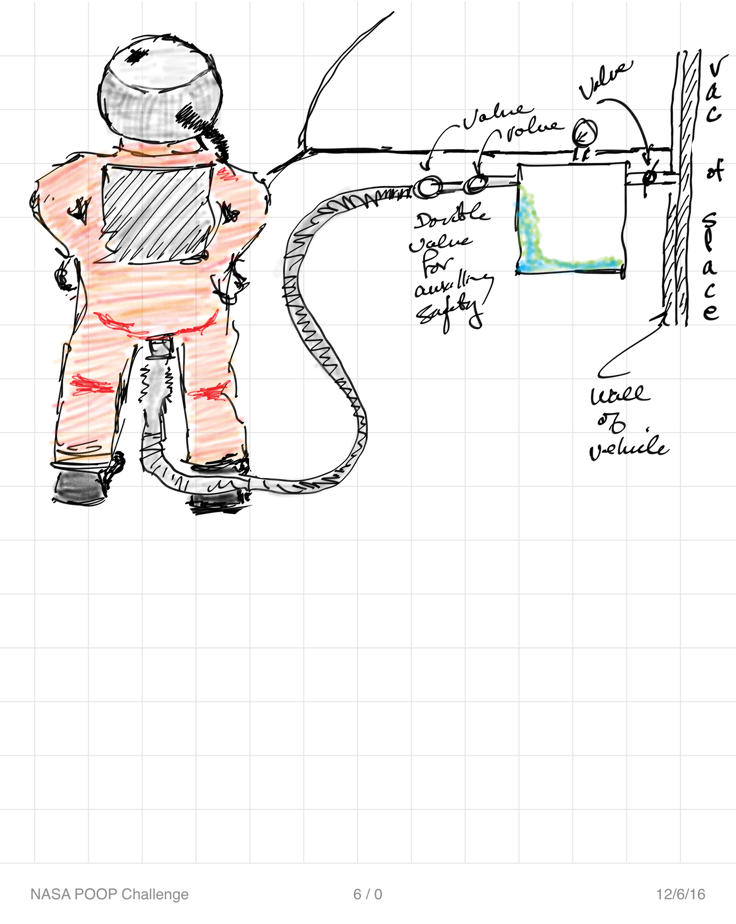 The Space Poop Portal was an easy concept for her to understand. It hasn't been many years since she was in diapers. Bringing those concepts to life through sketches allowed us to create a concept for astronauts.